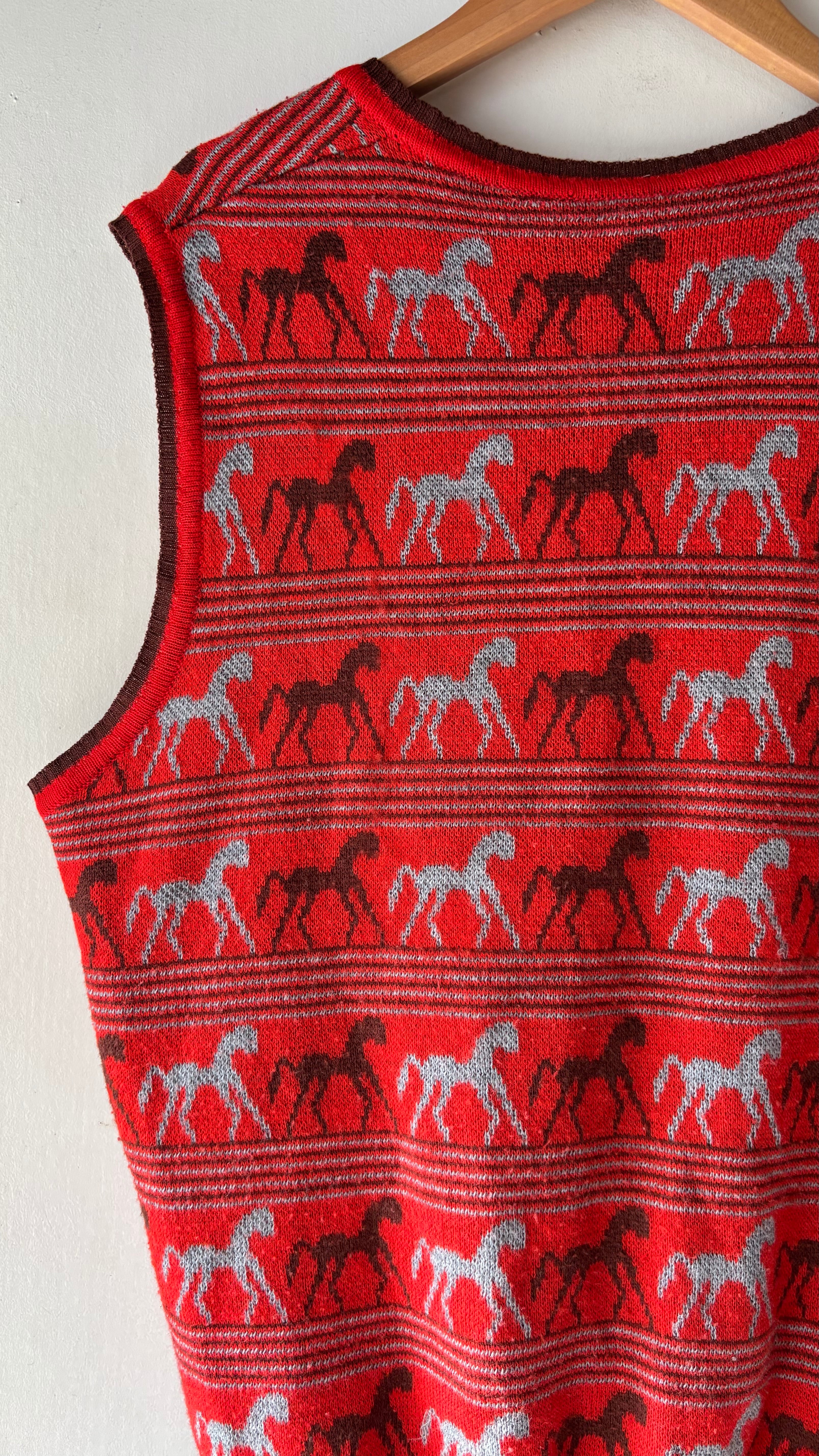 ⚫︎全体的に馬の絵柄が編みで入っており大人な雰囲気漂うベストになっております。