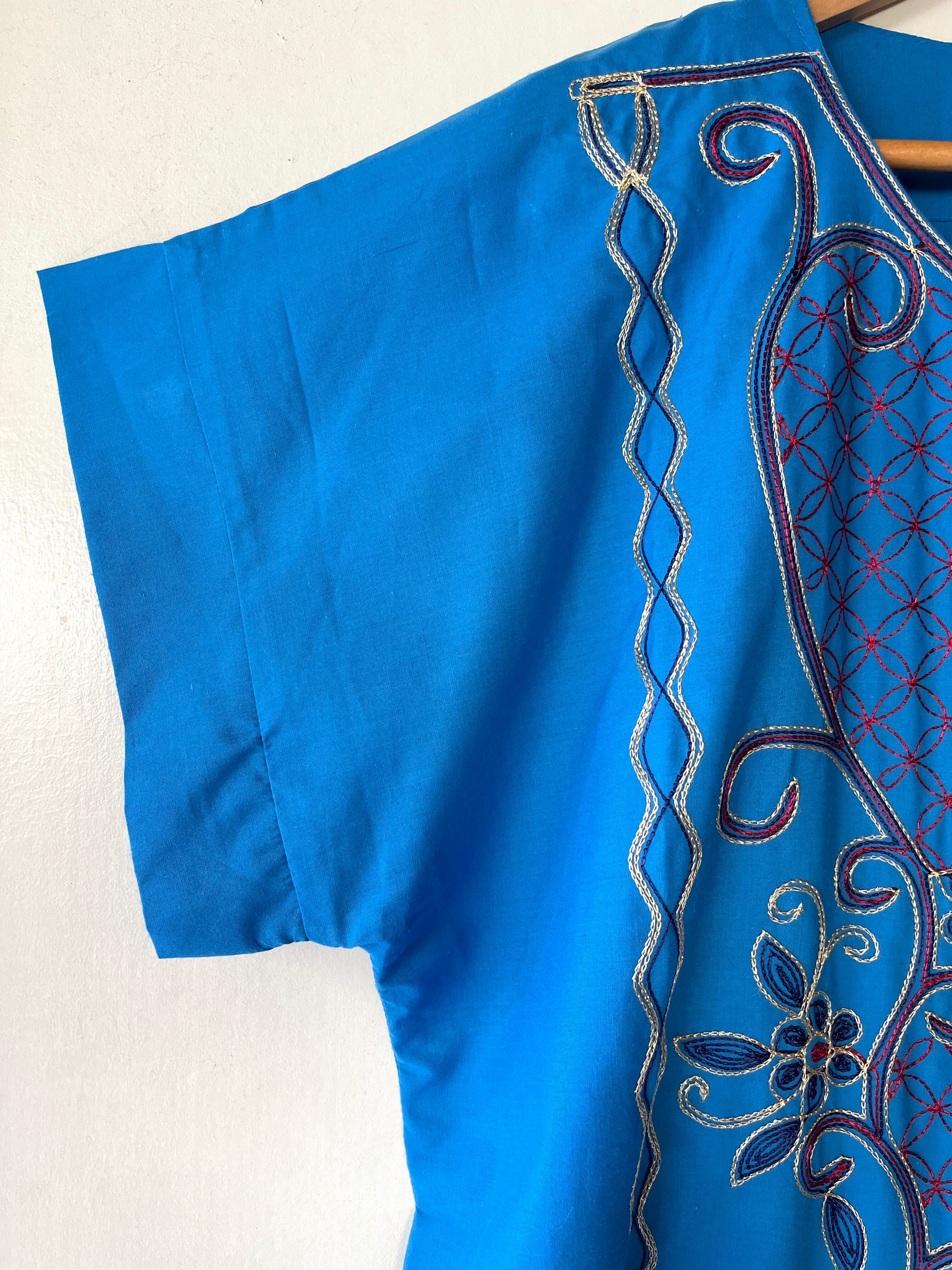 ⚫︎鮮やかなブルーが特徴的なカフタンドレスです。